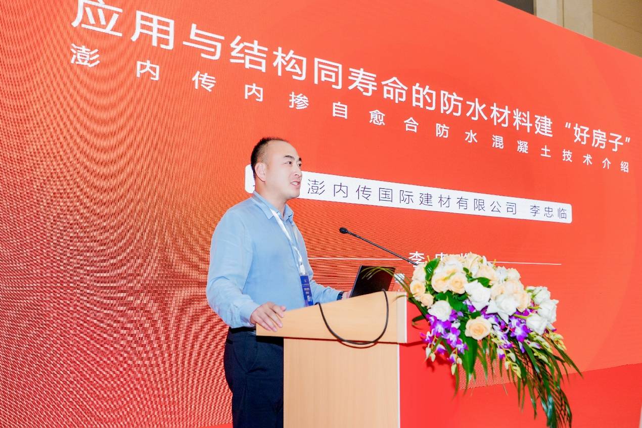 北京澎內(nèi)傳國際建材有限公司市場總監(jiān)李忠臨以《與結(jié)構(gòu)同壽命防水材料助力建造“好房子”》為題作了專題報告,首先總結(jié)分析了當前建筑物滲漏的主要原因,然后介紹了澎內(nèi)傳防水系統(tǒng)的機理、性能與技術(shù)特點,可從根本上解決滲漏問題,最后與大家分享了澎內(nèi)傳結(jié)晶自愈合防水混凝土在工程中的應用情況。